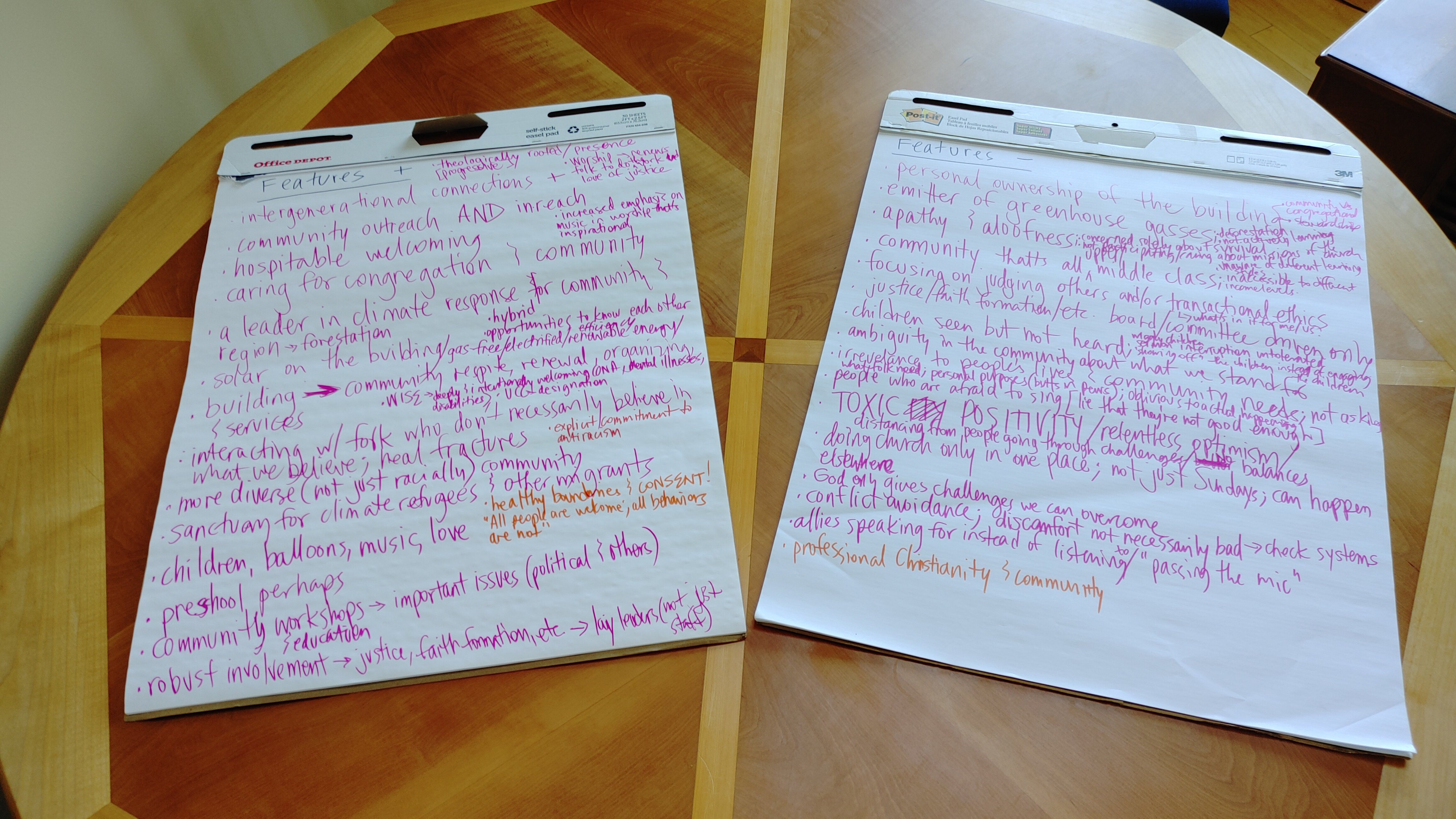 Whether or not you joined us on Sunday, I invite you to sit with these questions, and hopefully with a couple of big pieces of paper and your favorite writing implement. What features will a thriving First Congregational Church of Bellingham have in the future? What features will we emphatically not have?
