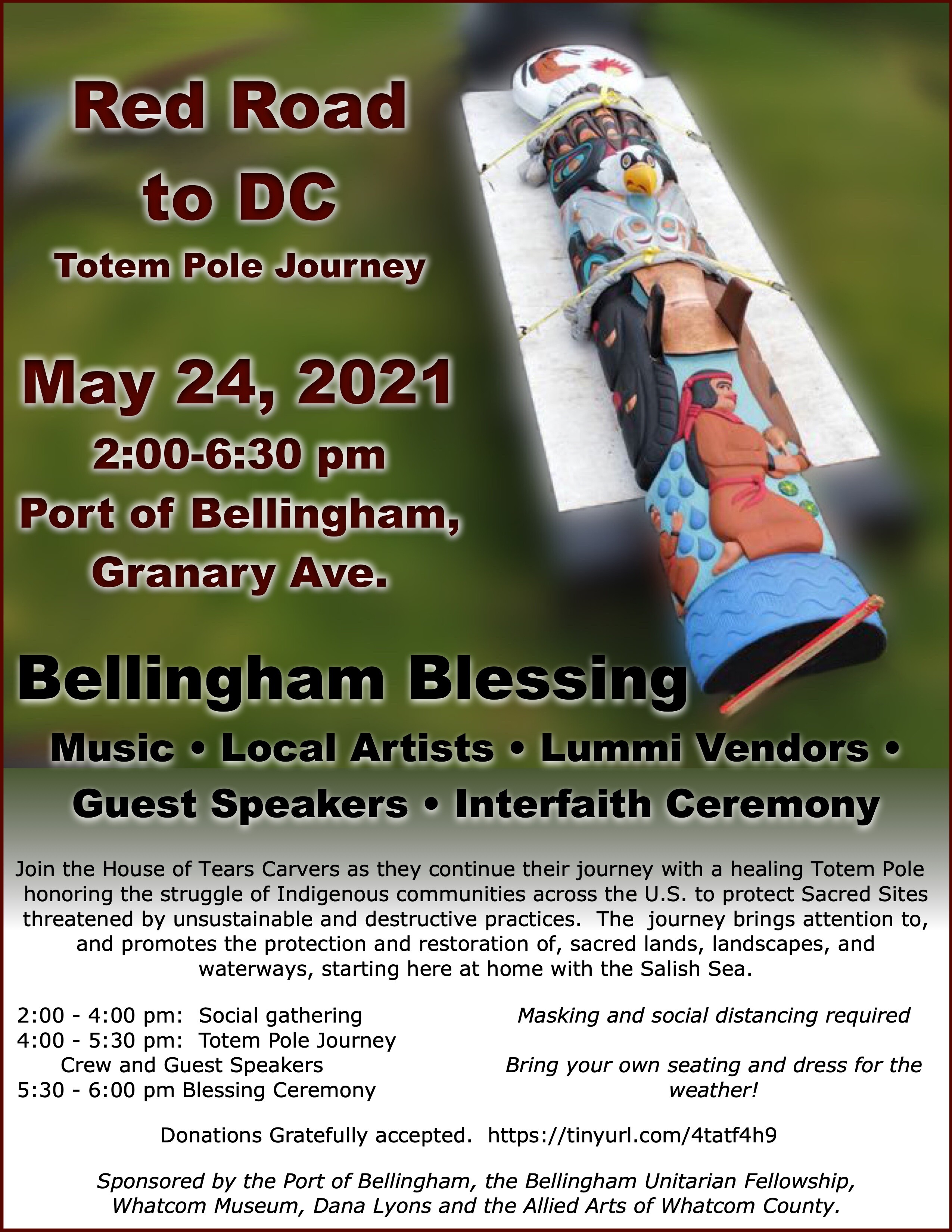 First Congregational Church has recently reactivated its membership with the Multifaith Network on Climate Justice. As a member of this local group, you are cordially invited to attend the Interfaith Blessing Ceremony of the Lummi Totem Pole Journey, Red Road to DC on May 24 2:00-6:30 pm. See the flyer below for more information.